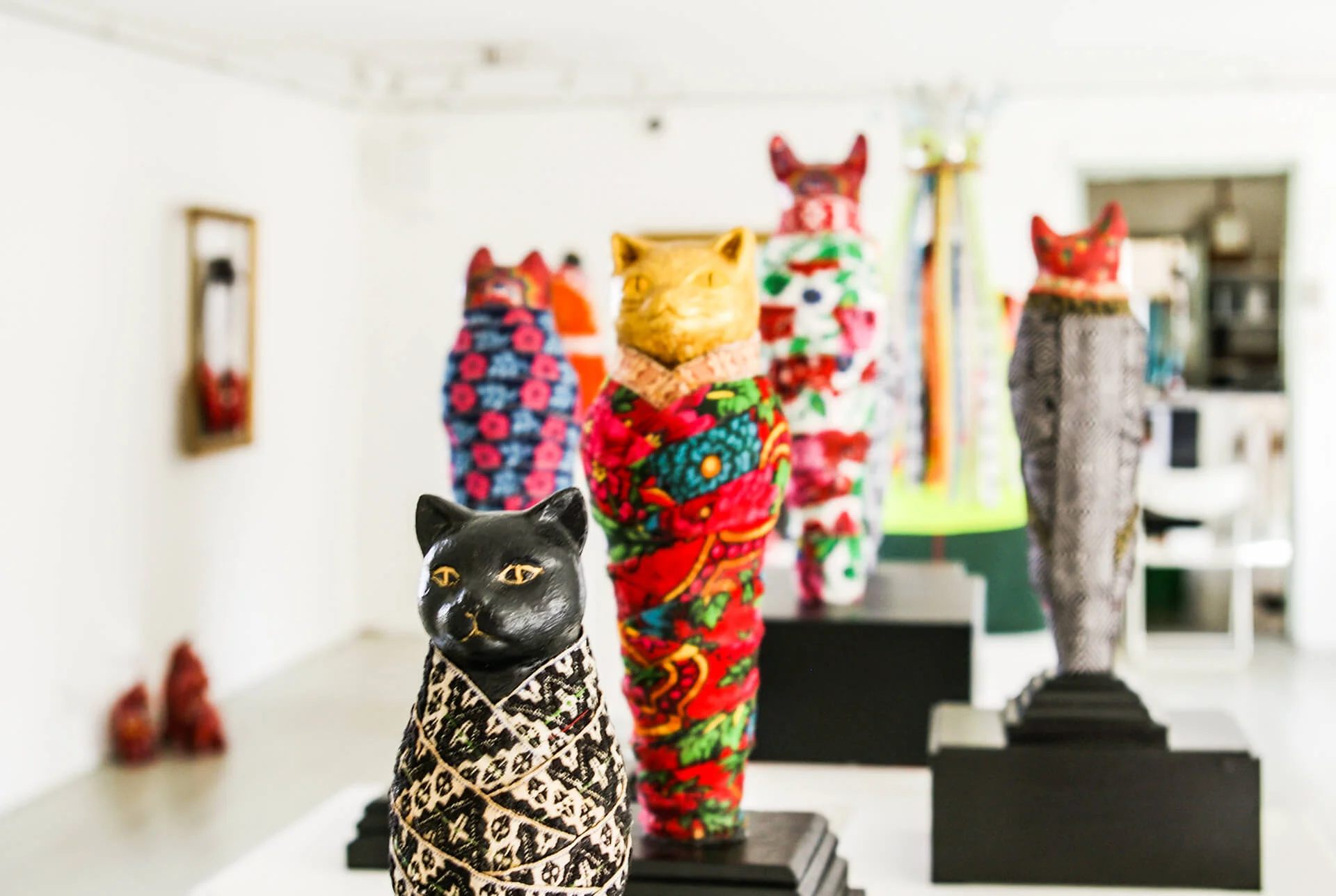 Med återbruk av färg, form, känsla och skönhet från de gamla dalmålarnas fantastiska tanke om att allt utgår från Dalarna har hon skapat sin utställning.